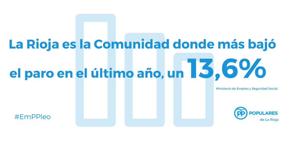 A la vista de estos datos, el Partido Popular de La Rioja renueva su compromiso con todos los riojanos para, junto a los agentes económicos y sociales, continuar trabajando para crear más empleo y de mayor calidad en nuestra Comunidad. El objetivo prioritario del Partido Popular de La Rioja es generar más oportunidades para todos los riojanos que quieren acceder al mercado laboral. En esa dirección, no ahorraremos esfuerzos para que nuestra Comunidad contribuya en la mayor medida posible al objetivo que nos hemos marcado de lograr 20 millones de personas trabajando en nuestro país en 2020.