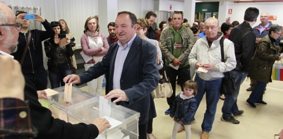 Pedro Sanz ha realizado estas declaraciones hoy, día 24, tras ejercer su derecho al voto en el Colegio Duquesa de la Victoria de la capital riojana acompañado de su mujer y su nieta.