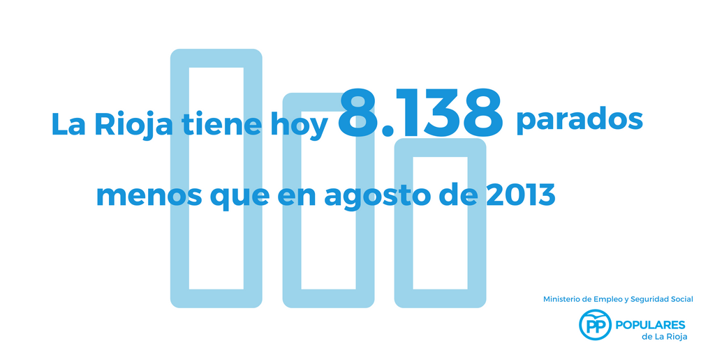 El paro continúa bajando en La Rioja por séptimo mes consecutivo, consolidando así una tendencia de creación de empleo plenamente consolidada en nuestra región. Hoy en La Rioja hay 8.138 parados menos que hace 3 años y hay que remontarse a 2008 para encontrar menos parados en La Rioja en un mes de agosto.