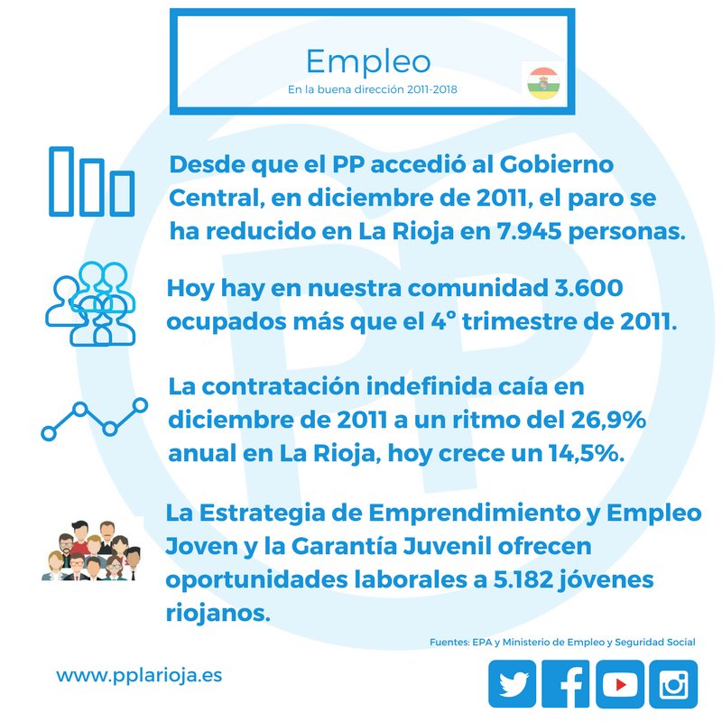 En este sentido, los Presupuestos Generales del Estado para 2018 son una herramienta clave para acelerar y consolidar esta creación de empleo, por ese motivo, desde el Partido Popular de La Rioja animamos a todas las fuerzas políticas a actuar con responsabilidad para contar cuanto antes con unas cuentas públicas que permitan seguir creando estable y de calidad en nuestro país.