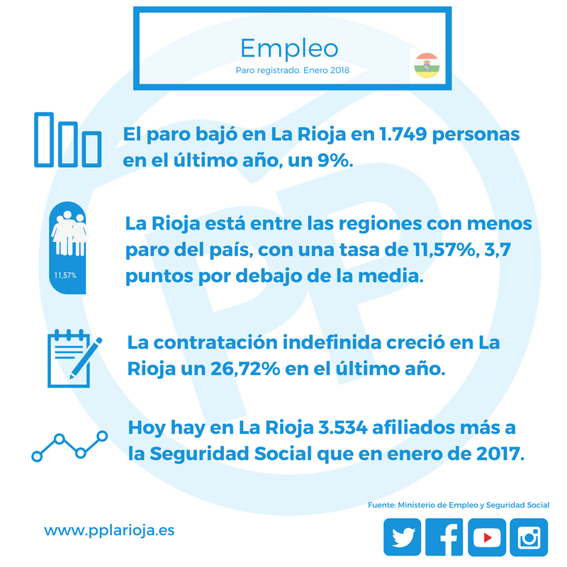 A la vista de estos datos, el Partido Popular de La Rioja destaca la positiva evolución interanual del mercado laboral tanto en España como en La Rioja que, a su vez, evidencia la capacidad de la economía española y riojana para seguir creando empleo.