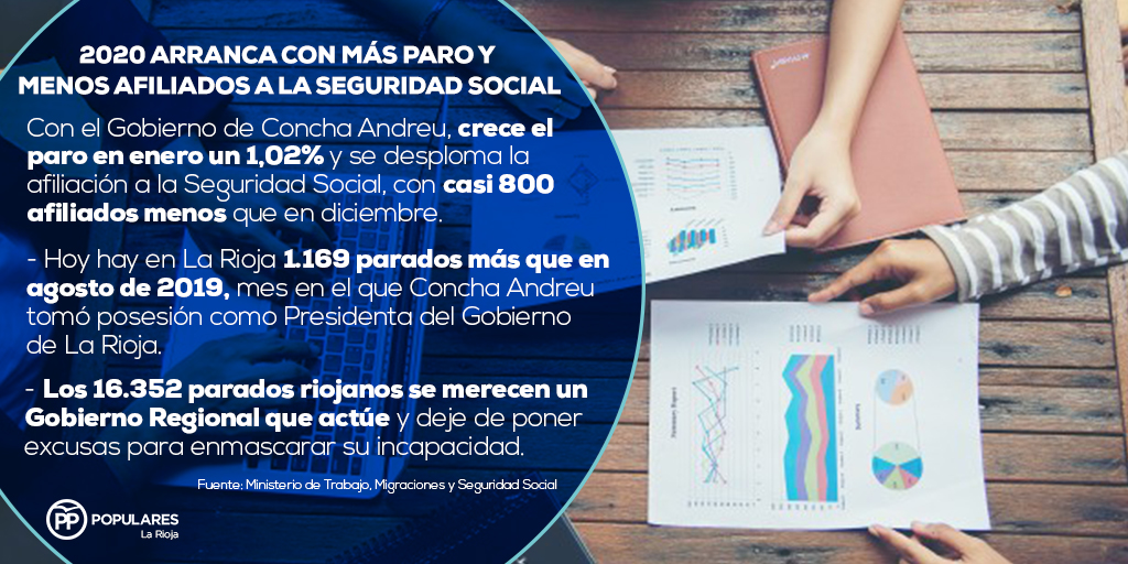 Los 16.352 parados riojanos y sus familias se merecen un Gobierno Regional que actúe y deje de poner excusas para enmascarar su incapacidad. Concha Andreu y sus decenas de altos cargos deben comenzar a ganarse el sueldo, impulsando medidas que brinden oportunidades de empleo a los miles de riojanos que quieren trabajar y no pueden.